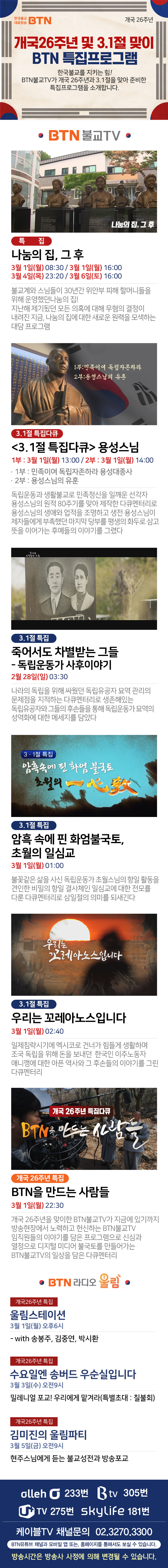 °³±¹26ÁÖ³â ¹× 3.1Àý ¸ÂÀÌ BTN ƯÁýÇÁ·Î±×·¥ ¾È³»