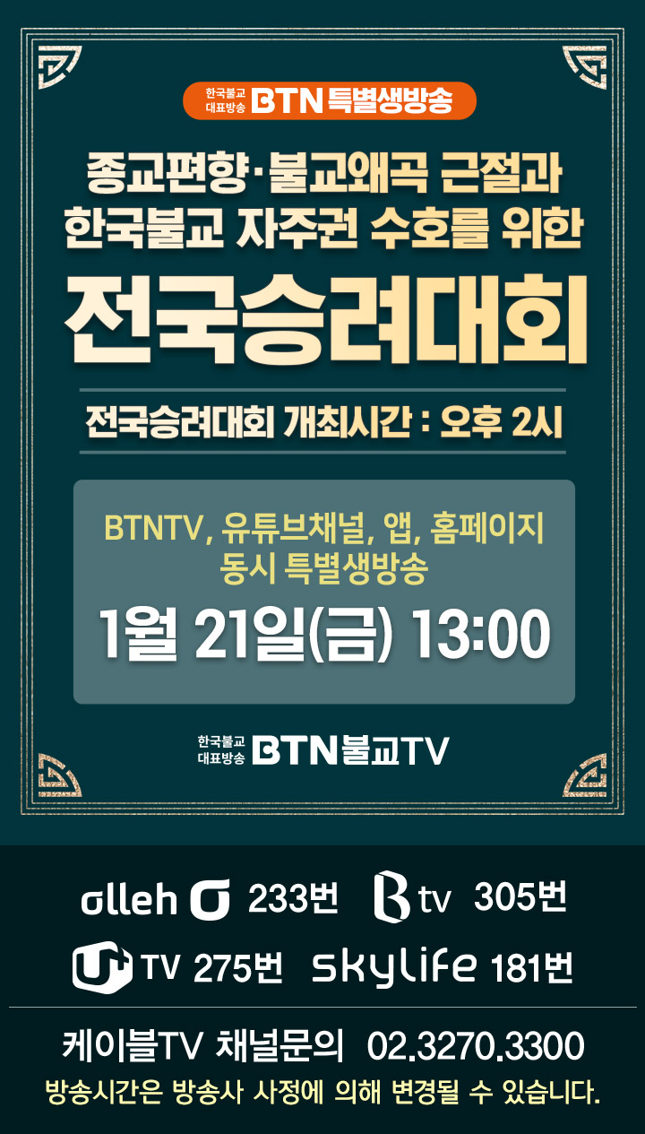 (BTN°øÁö»çÇ×) BTNƯº°»ý¹æ¼Û Á¾±³ÆíÇâ, ºÒ±³¿Ö°î ±ÙÀý°ú Çѱ¹ºÒ±³ ÀÚÁÖ±Ç ¼öÈ£¸¦ À§ÇÑ Àü±¹½Â·Á´ëȸ