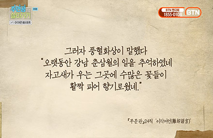 Á÷¼³È¹ýÀ¸·Î ÀþÀº ¼¼´ëµé¿¡°Ô ¸¹Àº ¿µ°¨À» ÁÖ°í Àִ öÇÐÀÚ °½ÅÁÖ°¡ Áß±¹ ¼±Á¾ ¹«¹®°üÀÇ ÈµÎ¿¡ ´ëÇØ¼ À̾߱âÇÏ´Â °ÀÇÇÁ·Î±×·¥. 48°³ÀÇ ¿¡ÇǼҵ忡 ´ã±ä ¿¾ °í½ÂµéÀÇ ¼± ¼öÇàÀ̾߱⸦ ÅëÇØ ¡®³ª¡¯ ±×¸®°í ¡®º»Áú¡¯ÀÌ ¹«¾ùÀÎÁö ÇѰÉÀ½¾¿ ´Ù°¡°¥ ¼ö ÀÖ´Â ½Ã°£À» °¡Áø´Ù.